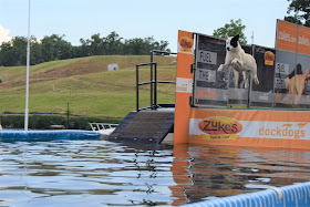 • EXTREME VERTICAL - This is a high jump for dogs. They begin at the 20' mark on the dock. A bumper toy is extended 8' from the end of the dock over the water. Jumps begin with the toy at a height of 4'6" and that height is increased by 2" increments as the competition progresses.
